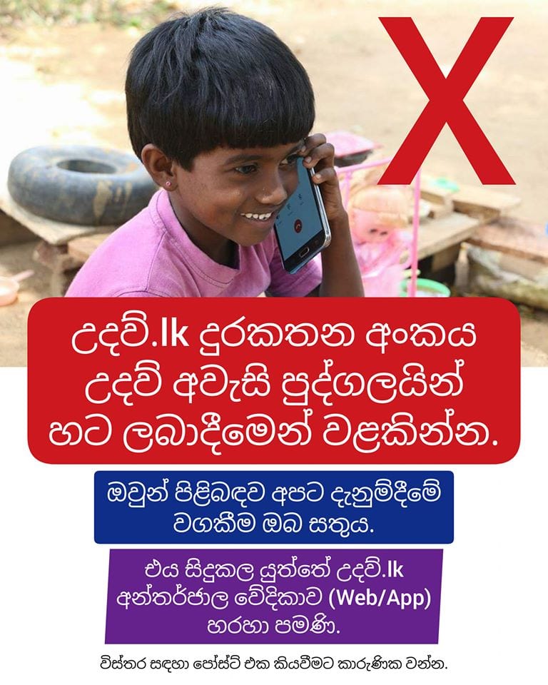 උදව්.lk දුරකතන අංකය උදව් අවැසි පුද්ගලයින් හට ලබාදීමෙන් වළකින්න.